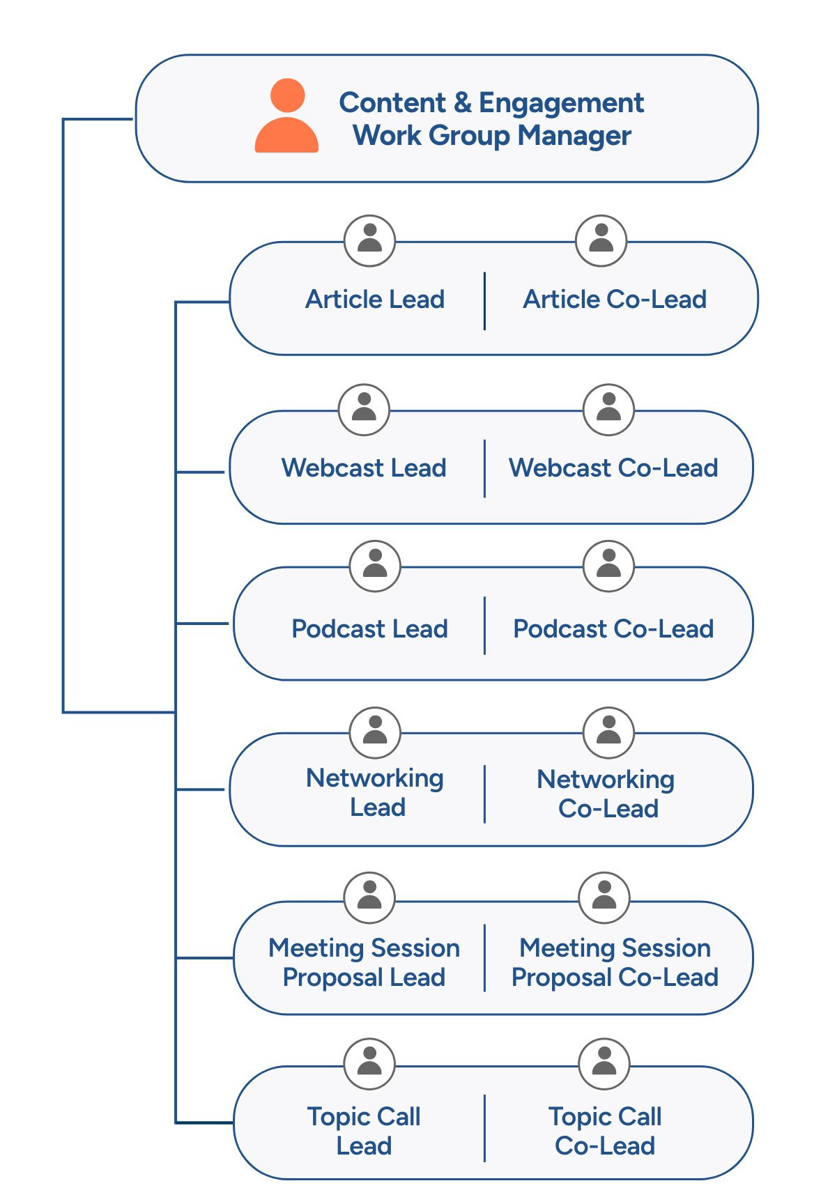 This group consists of non-elected positions. You can now participate and volunteer within the Content and Engagement Work Group.
